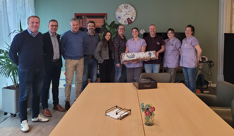 Op de foto: Jacob Lunenberg (links) en Gert de Jong (tweede van links) van Altronic bij de ingebruikname van BproCare bij Stichting Niko.